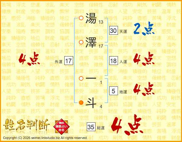 湯澤一斗さんの総運は35画の4点!