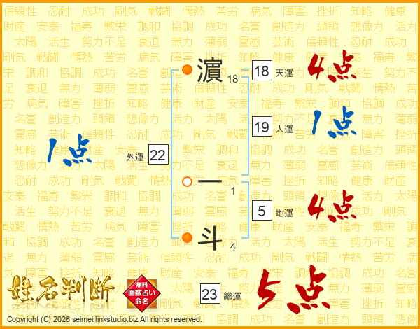 濵一斗さんの総運は23画の5点!