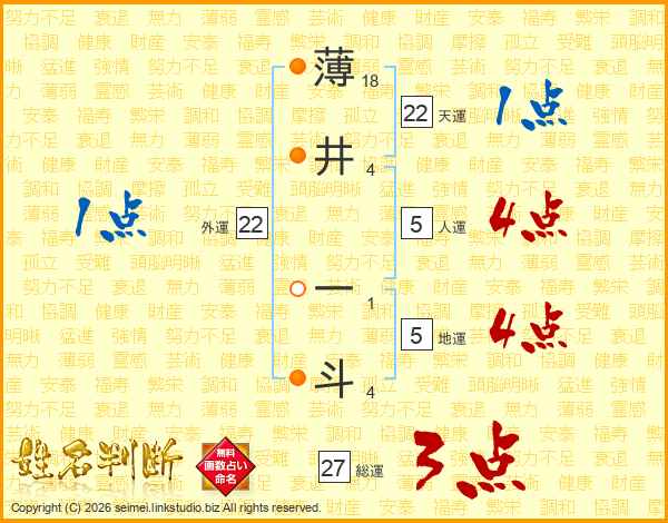 薄井一斗さんの天運は22画の1点!