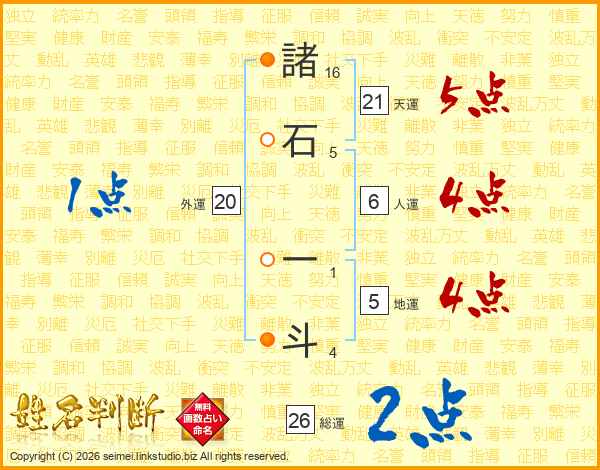 諸石一斗さんの総運は26画の2点!