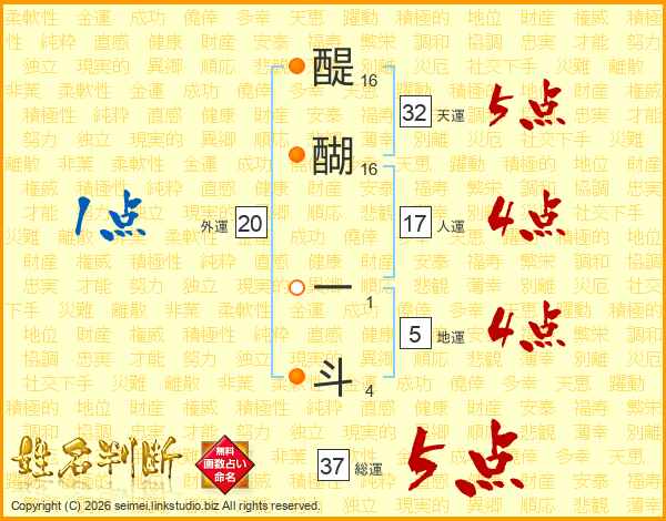 醍醐一斗さんの総運は37画の5点!