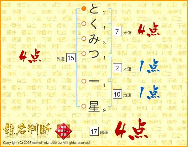 と(2画)く(1画)み(3画)つ(1画) 一(1画)星(9画)