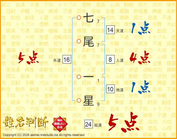 七尾一星さんの外運は16画の5点!