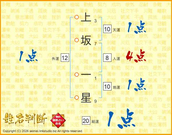 上坂一星さんの天運は10画の1点!