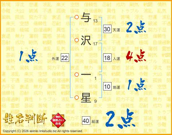 与沢一星さんの天運は30画の2点!