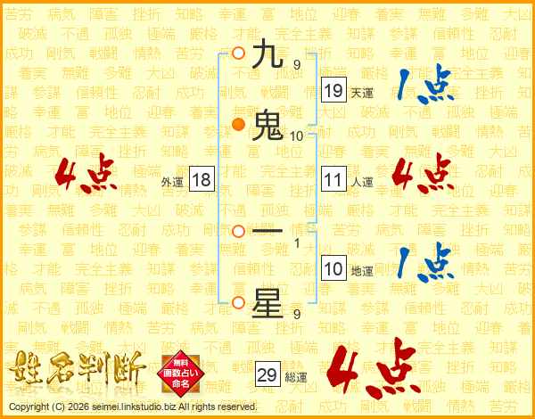 九鬼一星さんの総運は29画の4点!