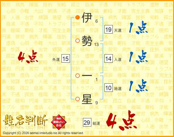 伊勢一星さんの総運は29画の4点!