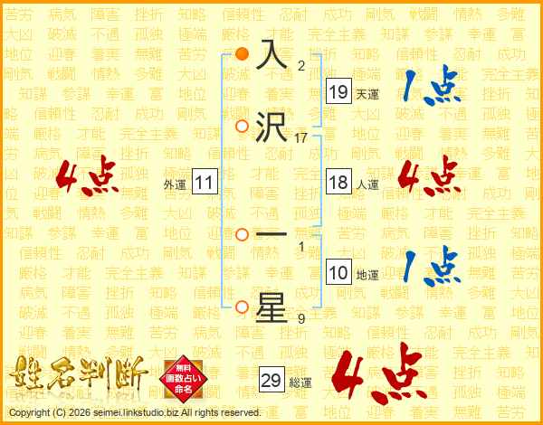 入沢一星さんの総運は29画の4点!