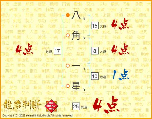 八角一星さんの総運は25画の4点!
