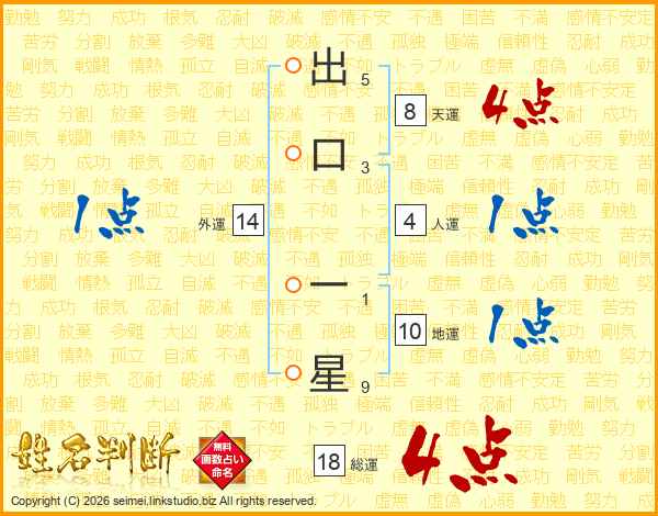 出口一星さんの総運は18画の4点!
