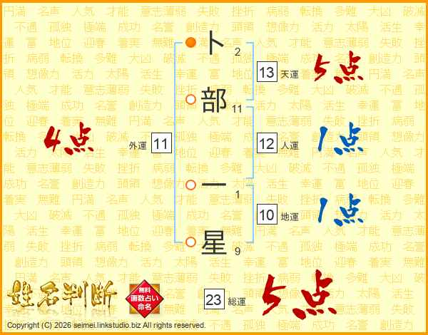 卜部一星さんの総運は23画の5点!