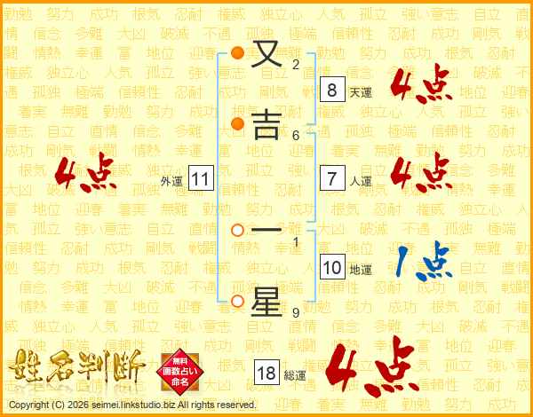 又吉一星さんの総運は18画の4点!