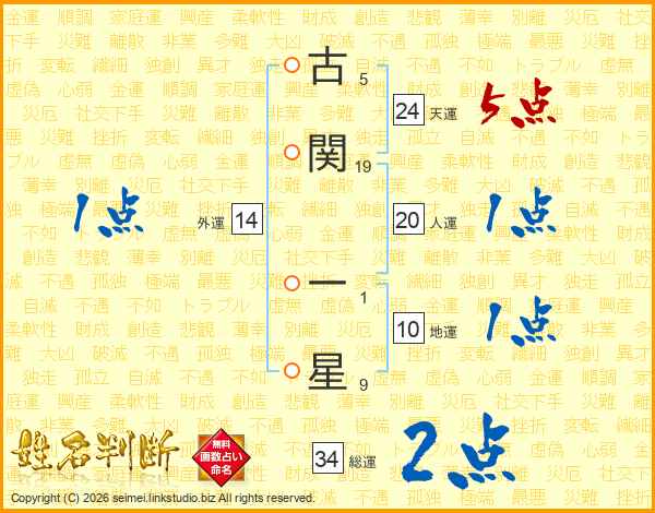 古関一星さんの天運は24画の5点!