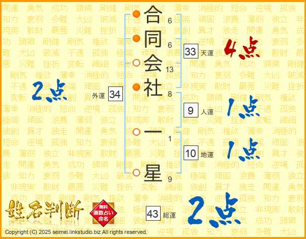 合(6画)同(6画)会(13画)社(8画) 一(1画)星(9画)
