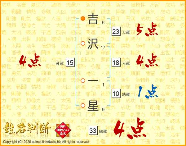 吉(6画)沢(17画) 一(1画)星(9画)