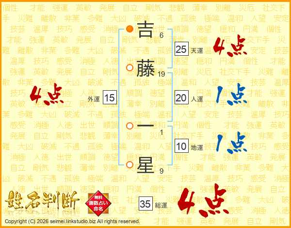 吉(6画)藤(19画) 一(1画)星(9画)