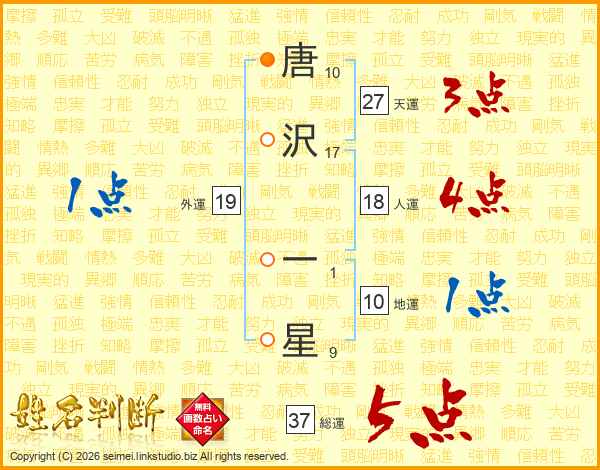 唐沢一星さんの総運は37画の5点!