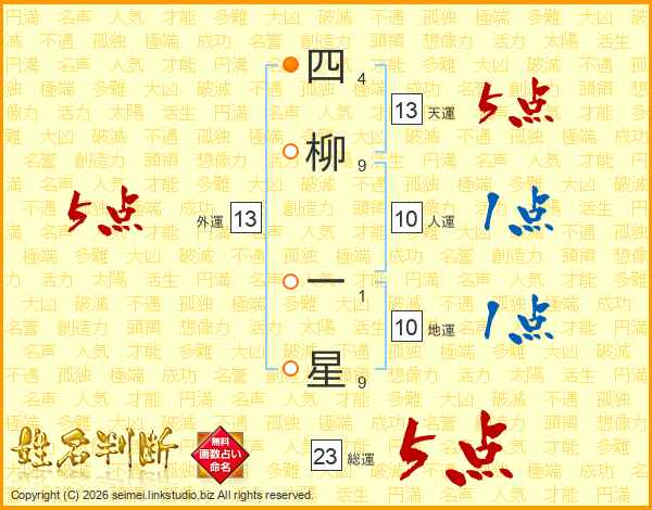 四柳一星さんの天運は13画の5点!