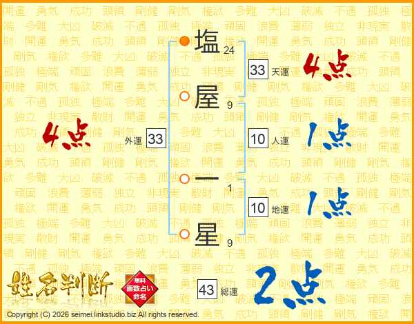 塩屋一星さんの外運は33画の4点!