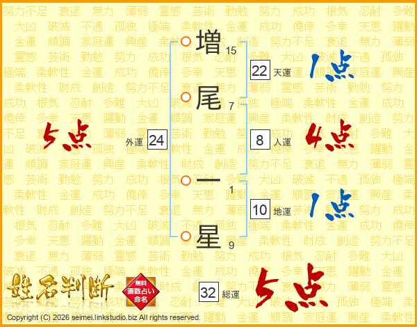 増尾一星さんの総運は32画の5点!