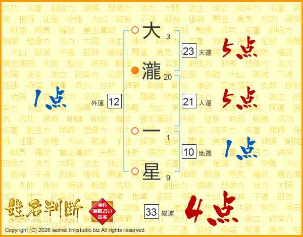 大瀧一星さんの総運は33画の4点!