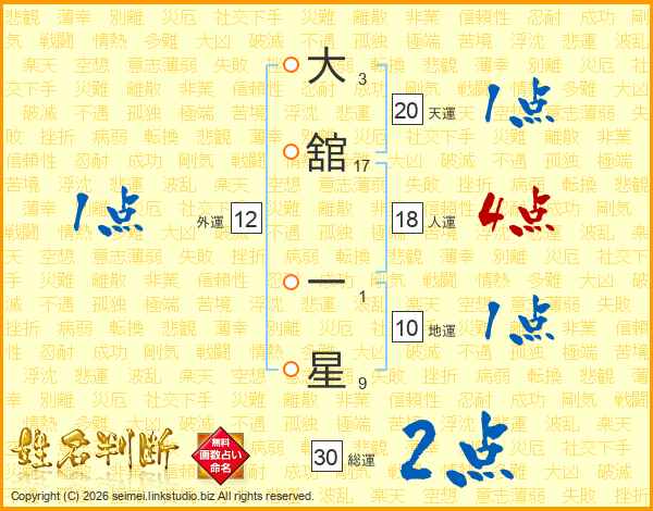 大舘一星さんの総運は30画の2点!