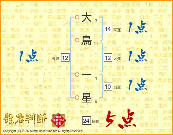 大鳥一星さんの総運は24画の5点!