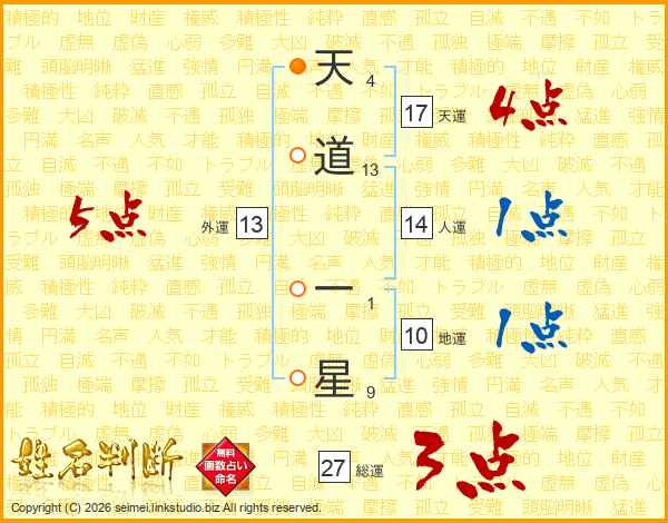 天道一星さんの総運は27画の3点!