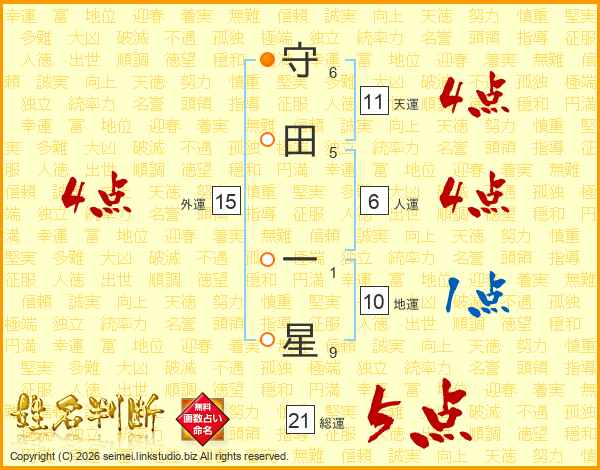 守田一星さんの総運は21画の5点!