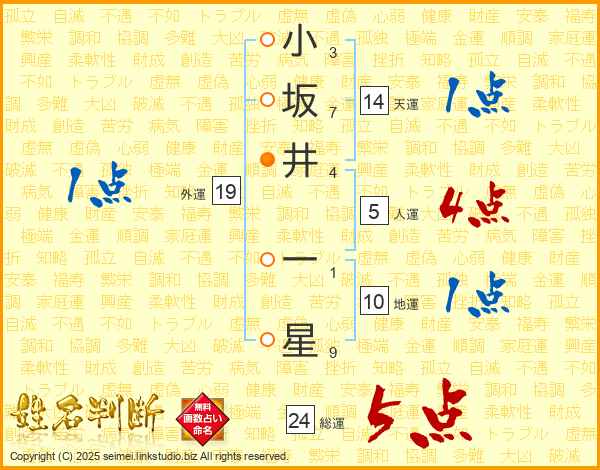 小坂井一星さんの天運は14画の1点!