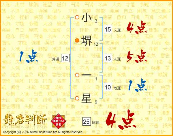 小堺一星さんの総運は25画の4点!