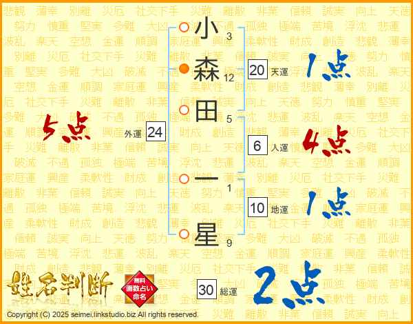 小森田一星さんの総運は30画の2点!