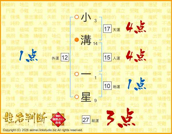 小溝一星さんの総運は27画の3点!