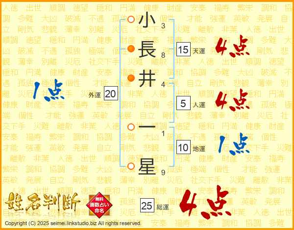 小(3画)長(8画)井(4画) 一(1画)星(9画)