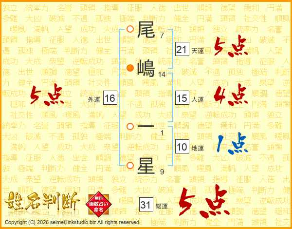 尾嶋一星さんの外運は16画の5点!