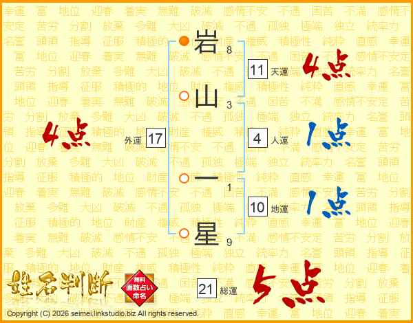 岩山一星さんの総運は21画の5点!