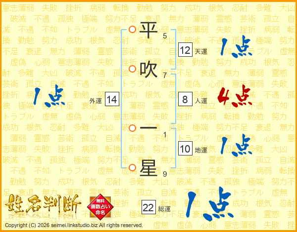 平吹一星さんの総運は22画の1点!
