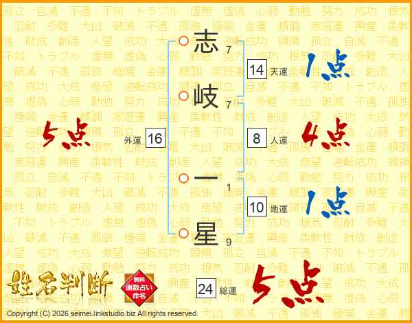 志岐一星さんの総運は24画の5点!