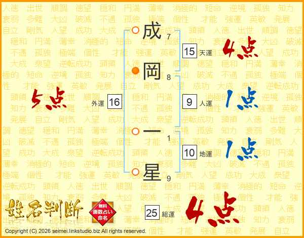 成岡一星さんの外運は16画の5点!