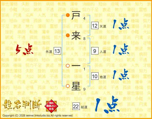戸来一星さんの総運は22画の1点!