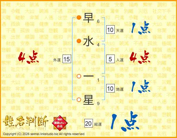 早水一星さんの総運は20画の1点!
