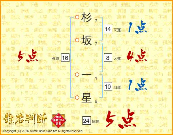 杉坂一星さんの総運は24画の5点!