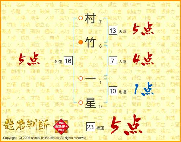 村竹一星さんの総運は23画の5点!