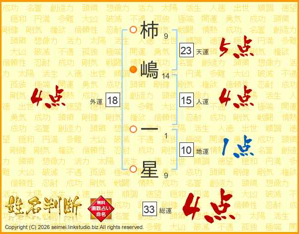 柿嶋一星さんの総運は33画の4点!