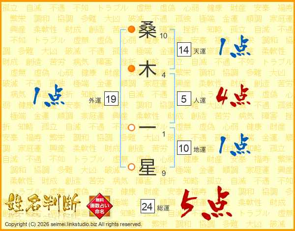 桑木一星さんの総運は24画の5点!
