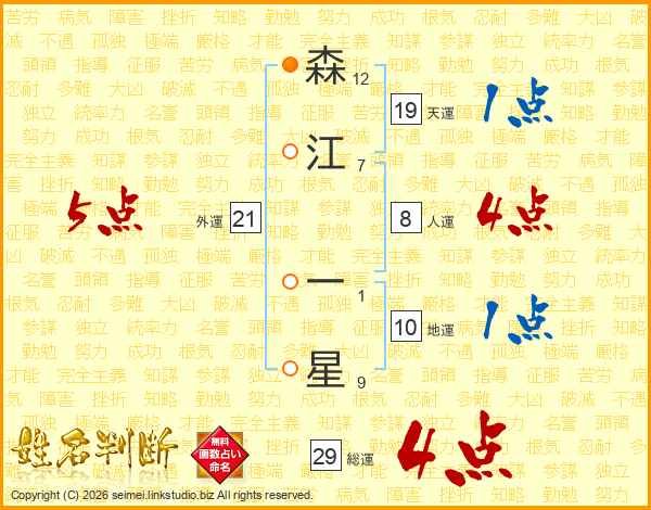 森江一星さんの総運は29画の4点!