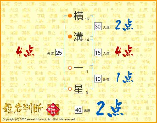 横溝一星さんの総運は40画の2点!