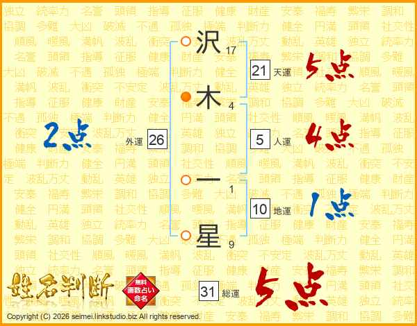 沢木一星さんの総運は31画の5点!