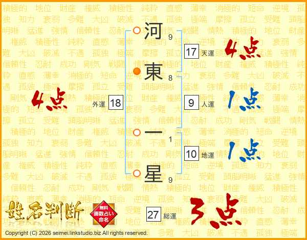 河東一星さんの外運は18画の4点!