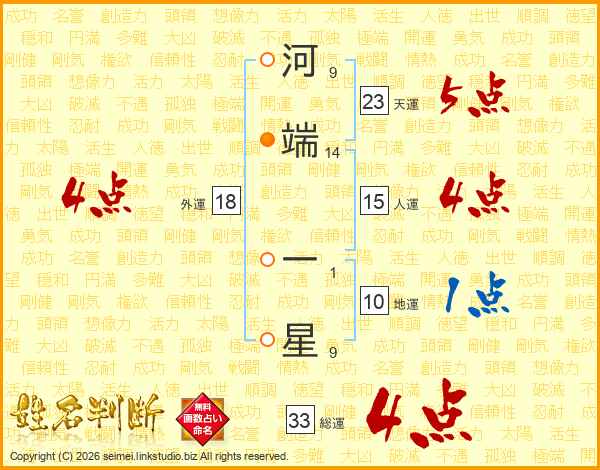 河端一星さんの総運は33画の4点!